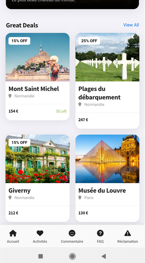 Proposez à vos clients les meilleures excursions et ventes de billets pour les monuments et musées locaux directement via notre Guest App. En quelques clics, ils réservent leurs activités et vous, en tant qu’hôtelier, bénéficiez de commissions sur chaque vente. Une solution idéale pour améliorer l’expérience client tout en augmentant vos revenus !