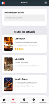 Offrez à vos clients une expérience complète en leur proposant une sélection des meilleures adresses à proximité : restaurants, spas, boutiques, lieux culturels et activités incontournables. Grâce à notre Guest App, ils accèdent facilement à toutes les recommandations de l’hôtelier .
