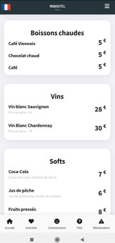 Affichez facilement la carte de votre bar ou restaurant dans notre Guest App ! Vos clients peuvent consulter les menus, découvrir vos spécialités. Une solution pratique pour améliorer leur expérience tout en valorisant votre offre.