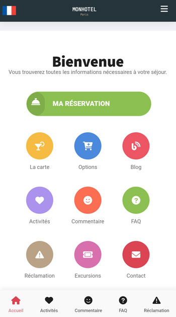 Facile à utiliser et entièrement personnalisable, notre Guest App renforce l’interaction avec vos clients tout en optimisant la gestion de votre établissement.